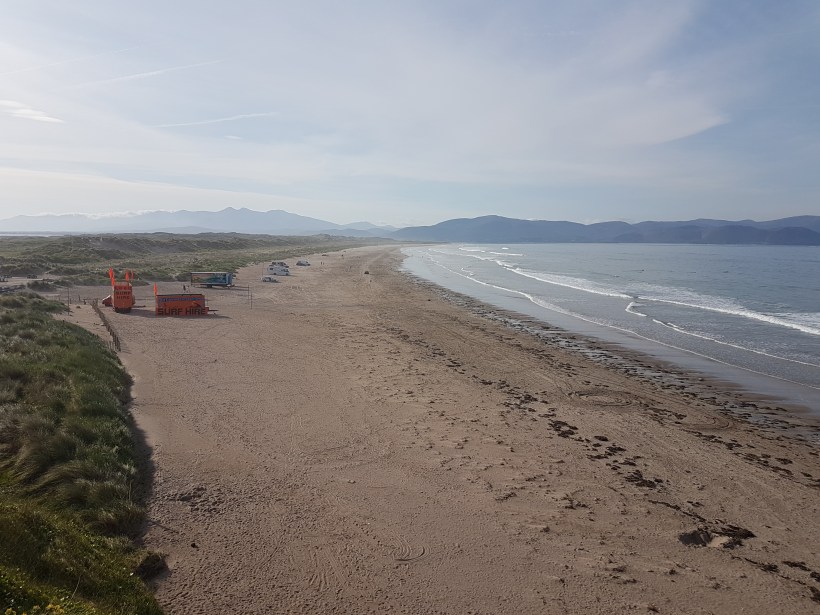 This parkrun takes place on Inch Beach, which is a long sand bar sticking out from the Dingle peninsula. The route could not be more simple; it consists of running from the start line down the beach to the turnaround point and then running back to the start line. The route is flat and is exposed to the Atlantic ocean to the west. Being on a beach, the surface is of course sand, which provides its own unique challenges. Generally the closer to the water the more tightly compacted the sand is. There are however several soft spots, which will slow you down. All in all, this is probably not the parkrun to attempt a PB. The surroundings are magnificent, with breathtaking views of the Iveragh peninsula to the south, and the Dingle peninsula to the north.